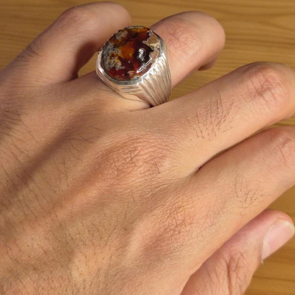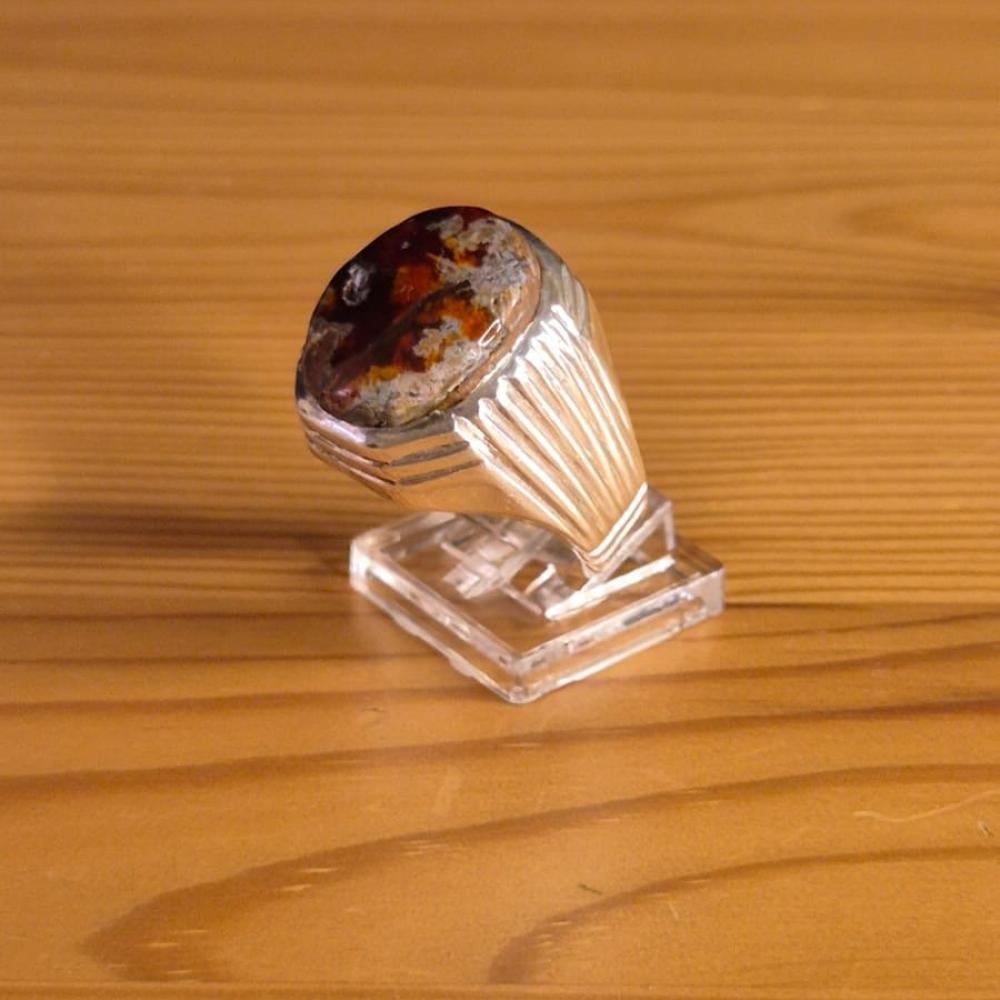 • الحجر:العقيق اليماني من الأحجارالكريمةذات الشهرة و القيمة العالية،يمنح الخاتم جمالية فريدة ولمسةمن الأصالة.