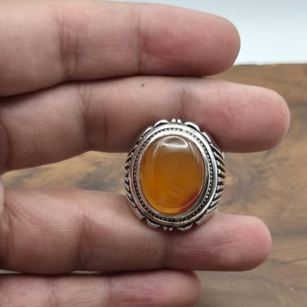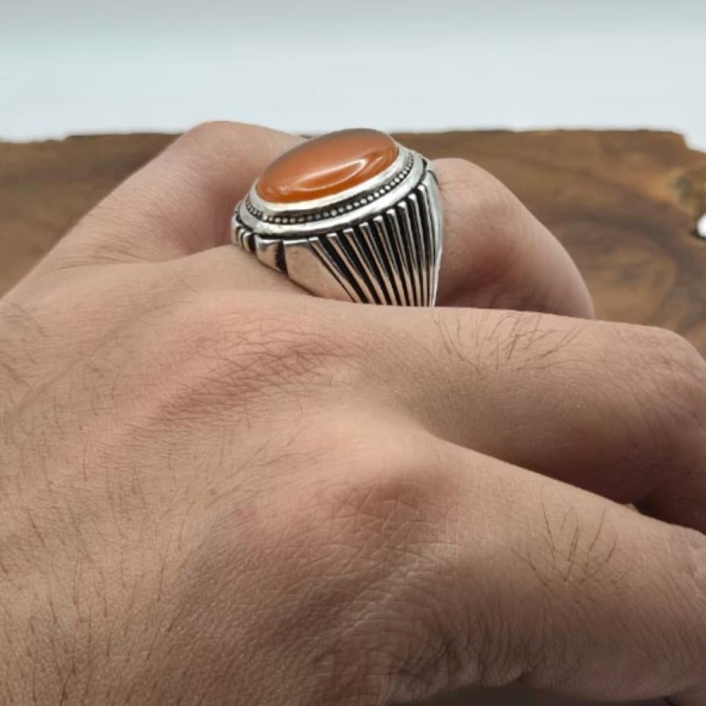 - الحجر:العقيق اليماني من الأحجارالكريمةذات الشهرة و القيمة العالية،يمنح الخاتم جمالية فريدة ولمسةمن الأصالة.