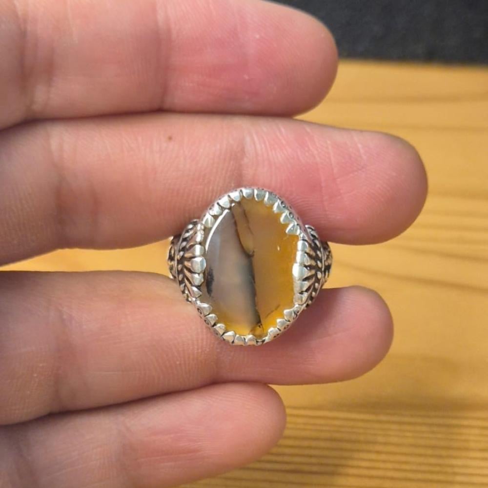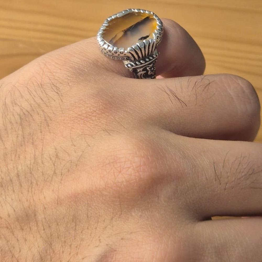 - الحجر:العقيق اليماني من الأحجارالكريمةذات الشهرة و القيمة العالية،يمنح الخاتم جمالية فريدة ولمسةمن الأصالة.