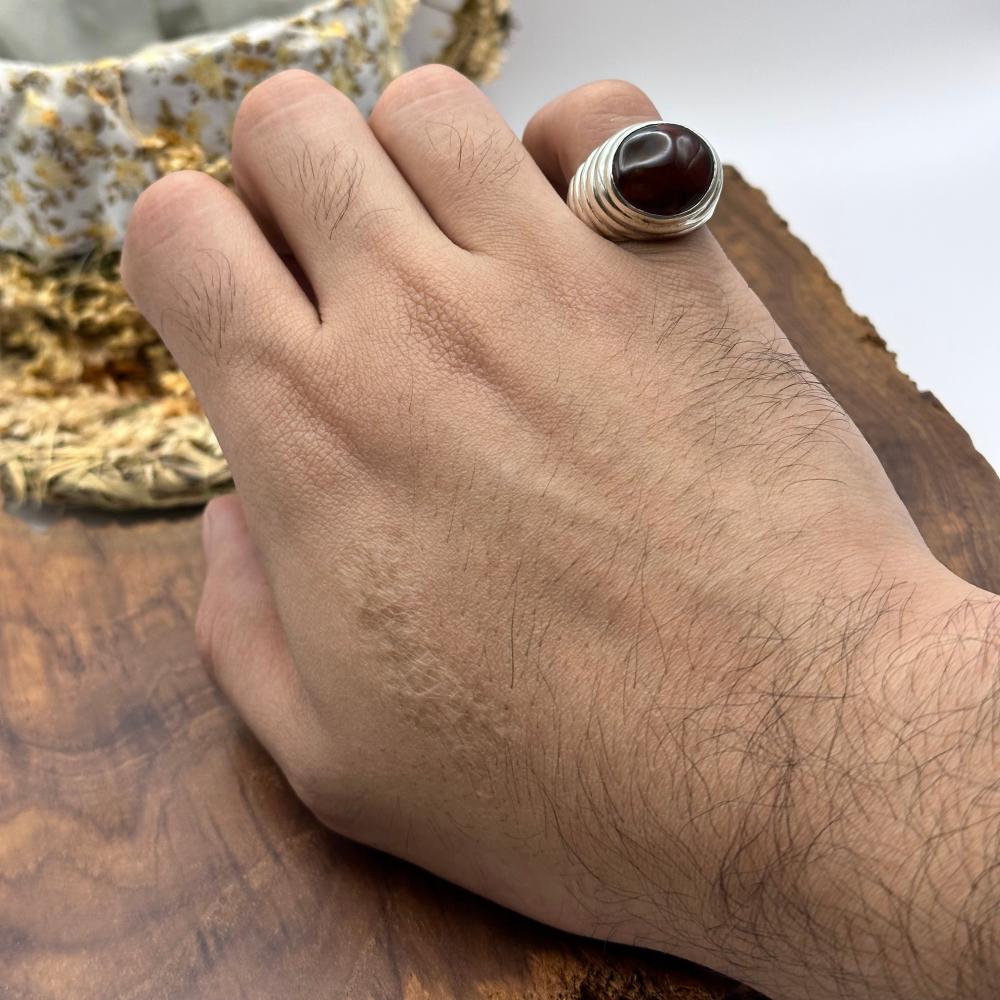 خاتم متوج بحجر العقيق اليماني الطبيعي الكرزي
